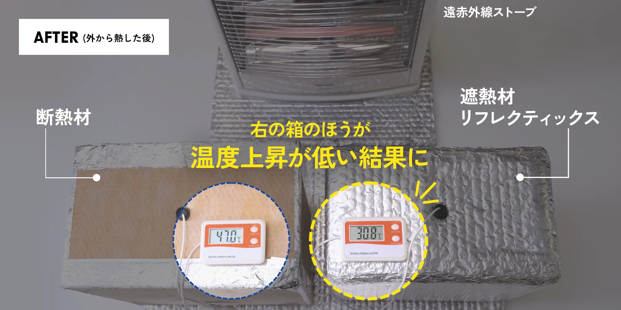 遮熱材リフレクティックスが赤外線から伝わる輻射を遮熱し